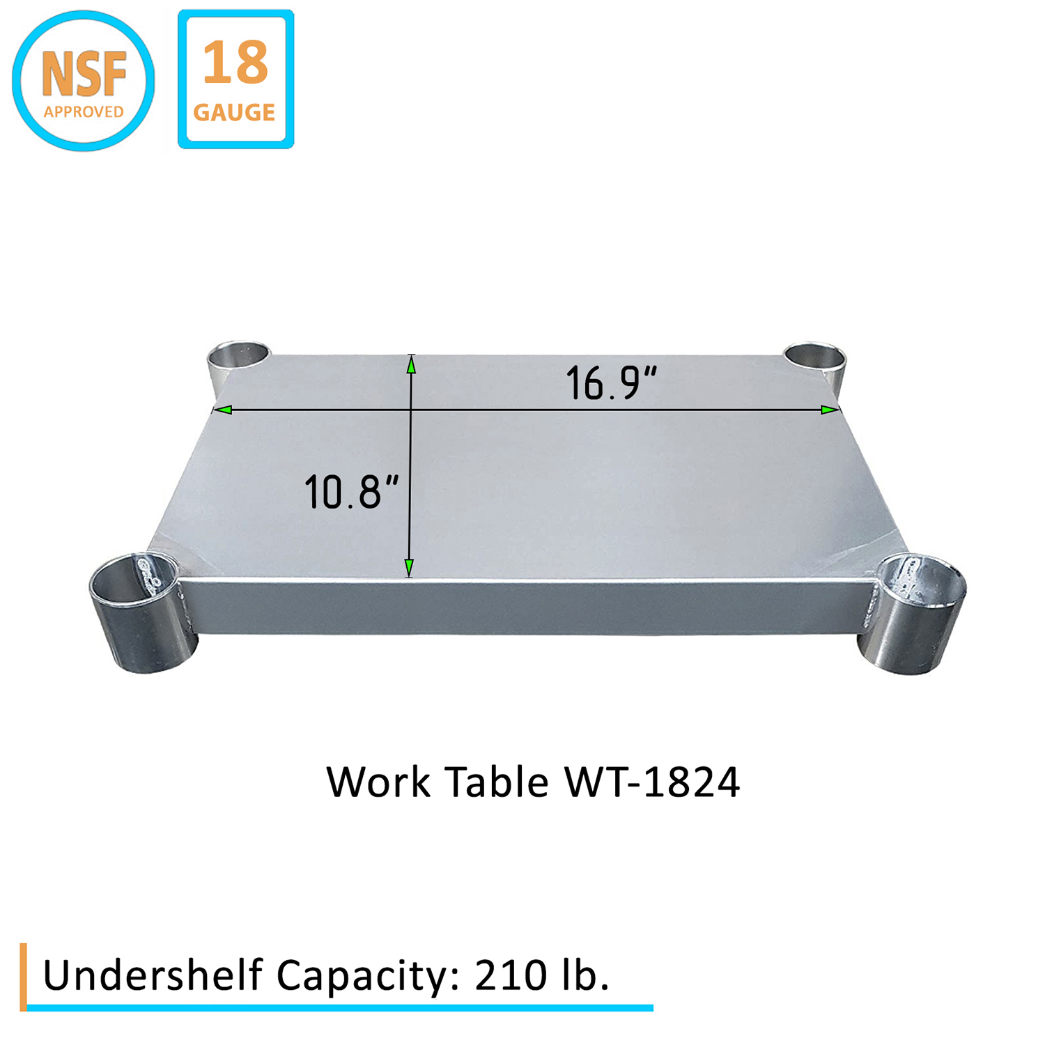 Whether you are outfitting a professional kitchen, a bustling workshop, or a commercial setting, the Additional Undershelf for your 18″ X 24″ Stainless Steel Work Table is the perfect solution for maximizing storage and functionality. Experience the benefits of added organization and streamlined workflow with this qualty, reliable undershelf, designed to meet the demands of any busy workspace.