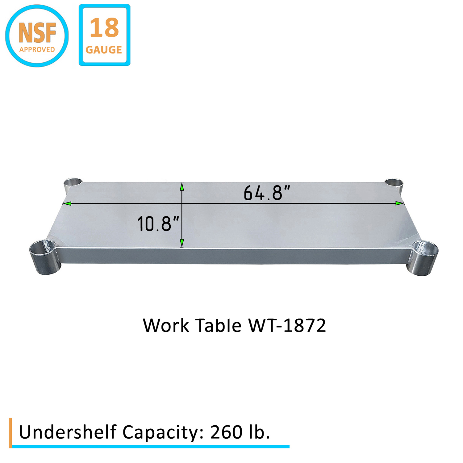 Additional Undershelf for 18″ X 72″ Stainless Steel Work Table