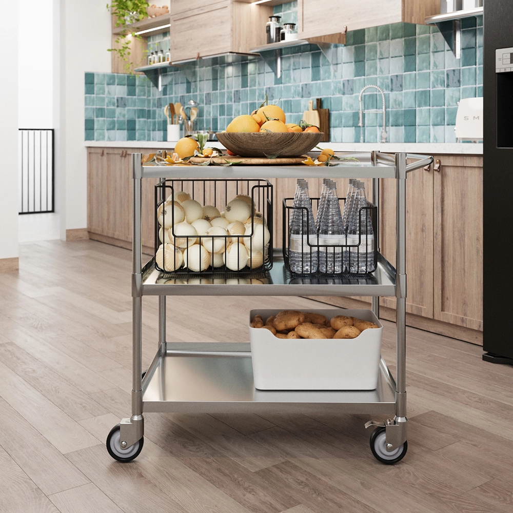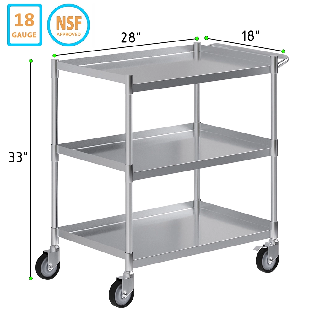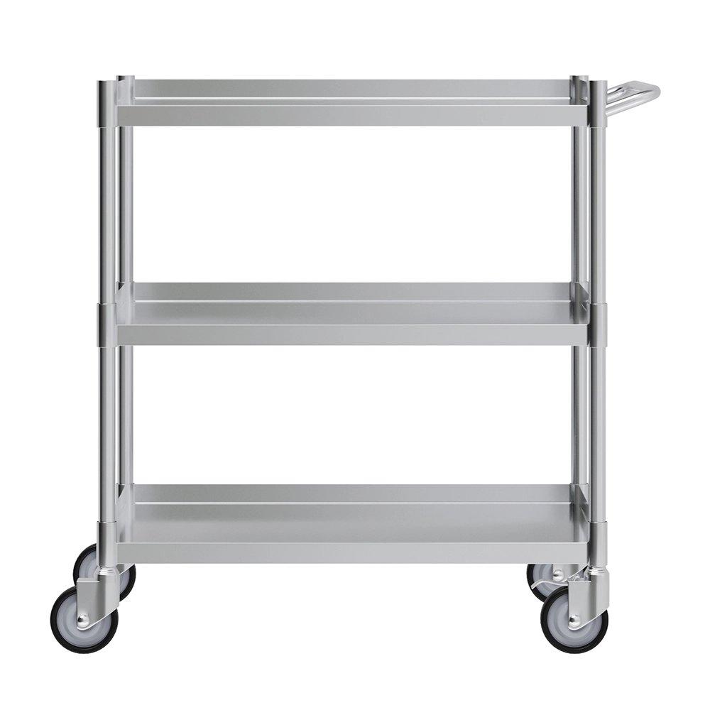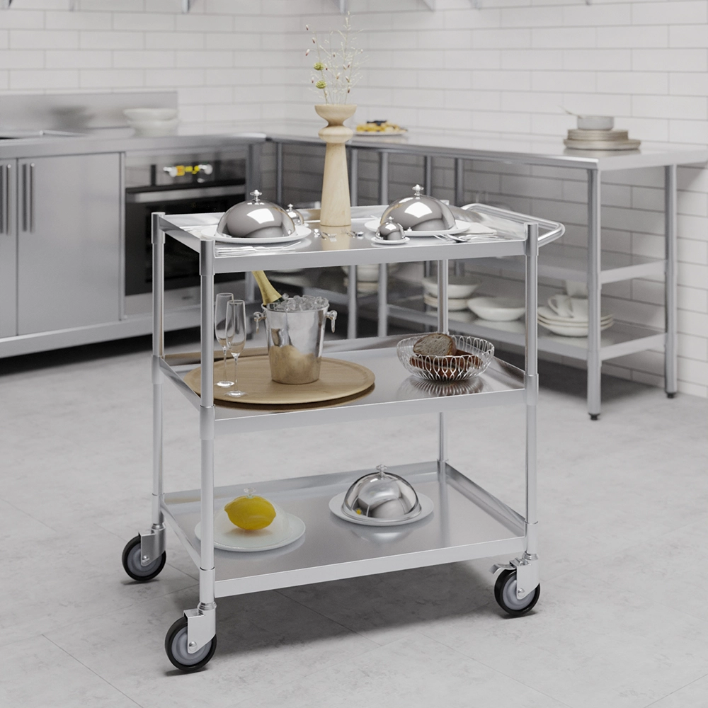 With its sleek and professional appearance, this 3-shelf stainless steel utility cart not only enhances functionality but also adds a modern touch to any workspace. Whether you’re organizing supplies in a lab, transporting tools in a workshop, or serving in a kitchen, this cart is a dependable and stylish addition.