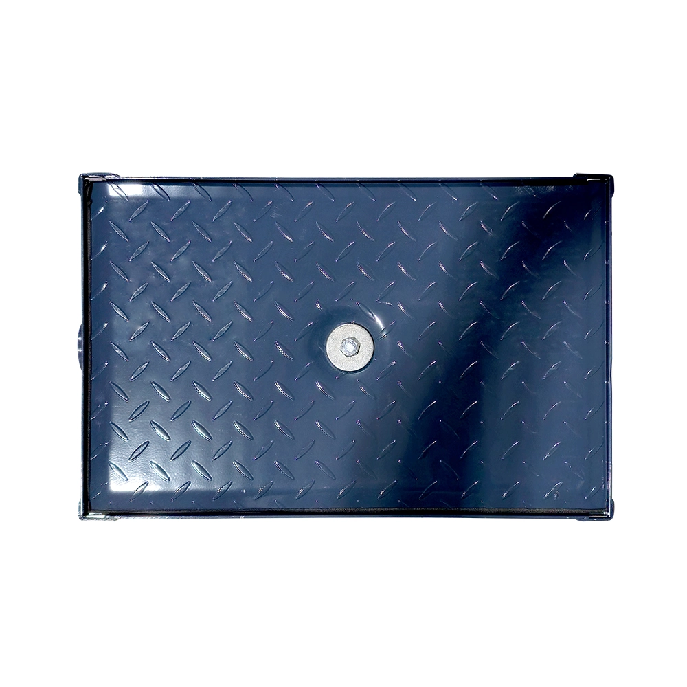 Diamond plate cover with a center bolt ensures a tight seal. Keeps unpleasant odors contained and maintains a clean, professional environment.