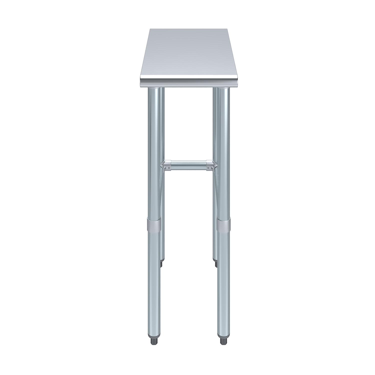 Enhance your workspace with the versatile and durable 24″ x 12″ Stainless Steel Work Table with Open Base. Crafted from 18GA/430 stainless steel, this work table is designed to withstand the rigors of daily use in commercial kitchens, workshops, laboratories, and other demanding environments. Its sleek, smooth surface is not only easy to clean but also resistant, ensuring long-lasting performance and hygiene.