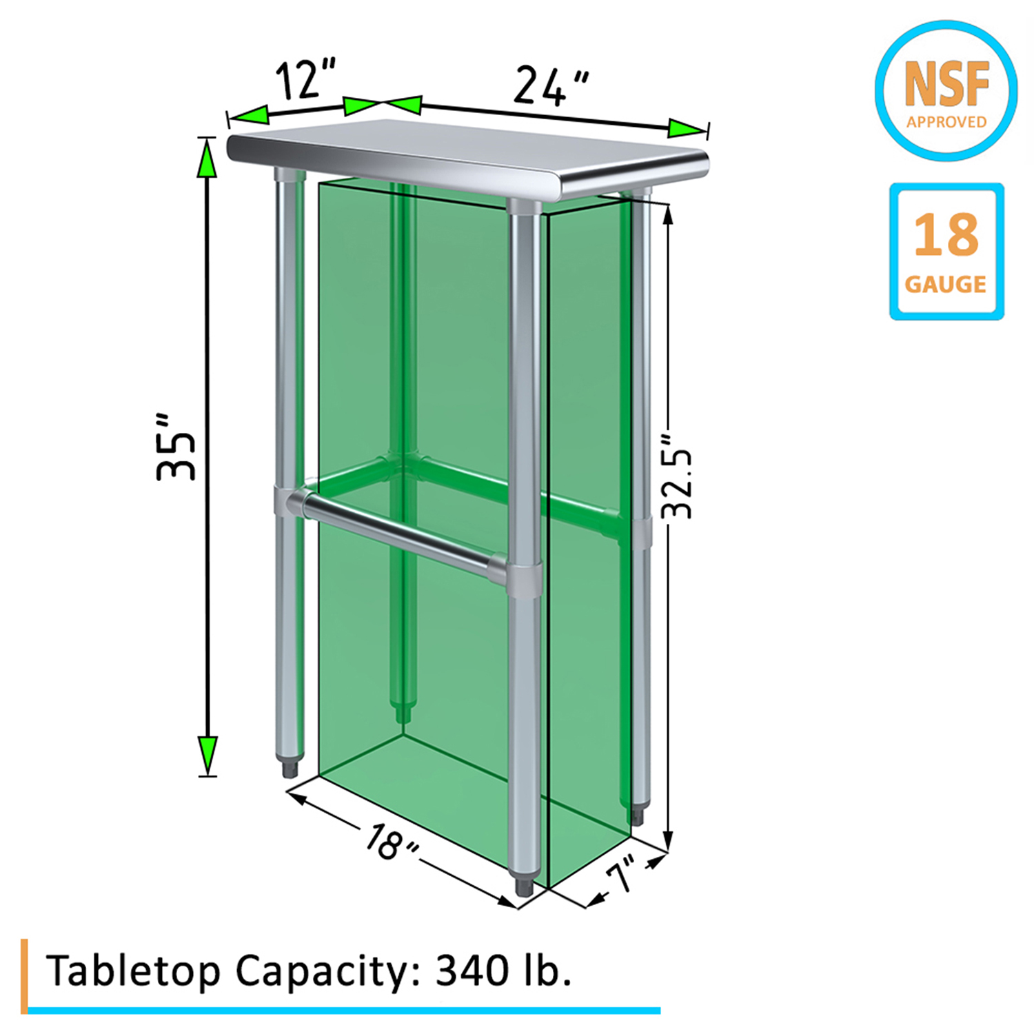 Open Box – 24″ X 12″ Stainless Steel Work Table With Open Base