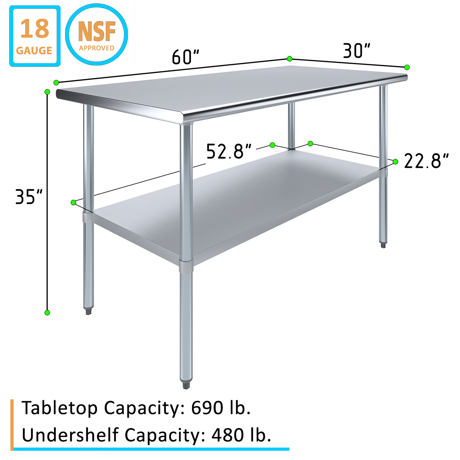 Open Box – 30″ X 60″ Stainless Steel Work Table With Undershelf
