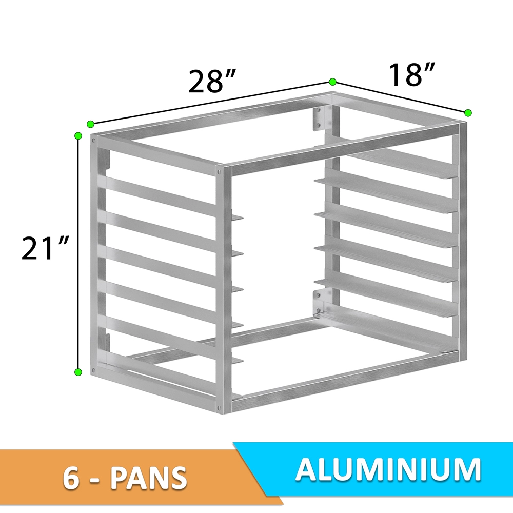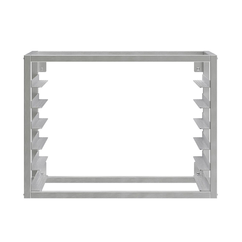 Constructed from durable materials, this pan rack is built to withstand the rigors of daily use in professional settings. Its sturdy construction ensures that each tier securely supports a full-size sheet pan, providing stability and long-lasting performance. The rack’s robust design resists bending and warping, even under heavy loads, making it a reliable addition to your kitchen.