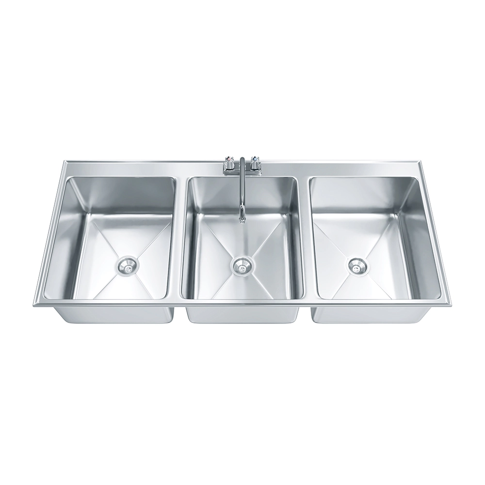 The triple-compartment design provides ample space for multitasking, making it easy to wash, rinse, or soak large pots, pans, and utensils simultaneously. The included faucet offers reliable water flow for efficient use, while the drop-in design ensures hassle-free installation, seamlessly fitting into most countertops. This sink is designed to handle heavy use while maintaining its functionality and aesthetic appeal.