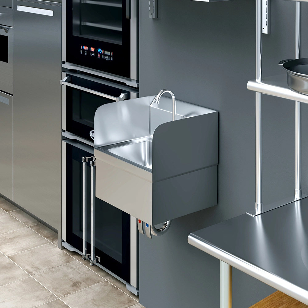 The wall-mounted design saves valuable space while ensuring easy accessibility. Designed for reliability and practicality, this sink is simple to install, clean, and maintain, providing a durable and efficient handwashing solution for any environment requiring the highest hygiene standards.