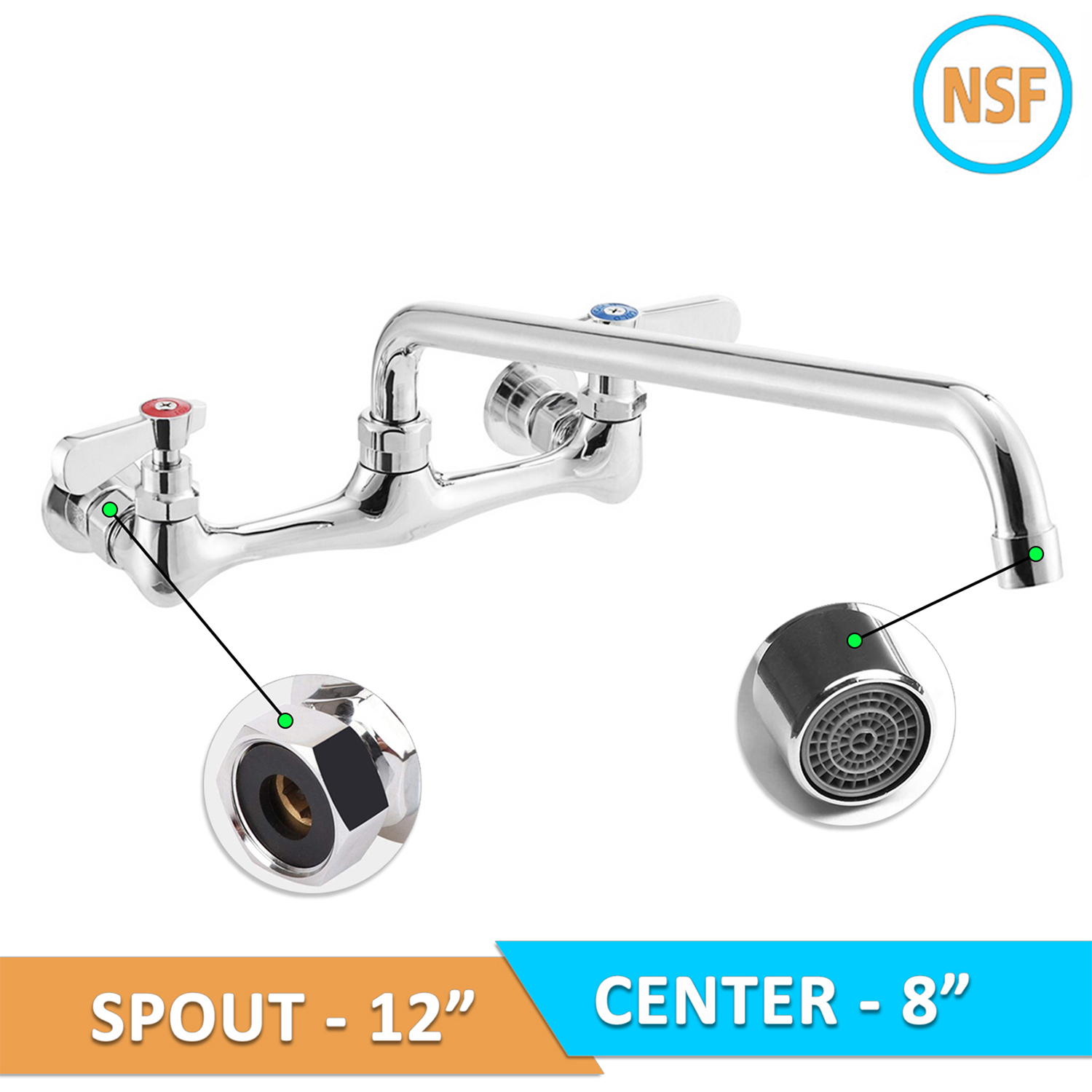 Designed with 8″ centers, this wall mount faucet is compatible with standard wall-mount setups, ensuring a straightforward and hassle-free installation process. The faucet comes with all necessary mounting hardware and clear instructions, making it easy to upgrade your existing fixtures with minimal downtime. This compatibility ensures that your kitchen or workspace remains operational and efficient during the transition.