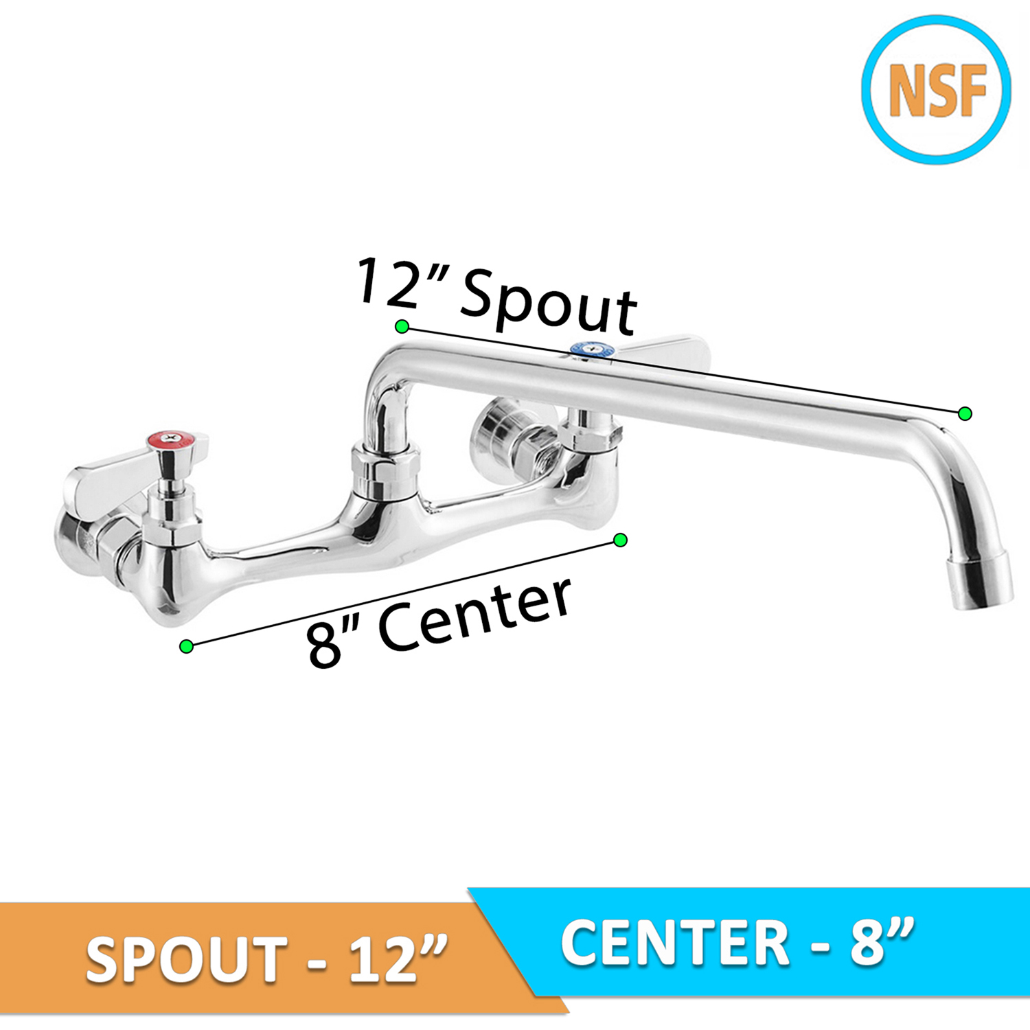 Wall Mount Faucet 12″ Swing Spout and 8″ Centers and Lever Handles