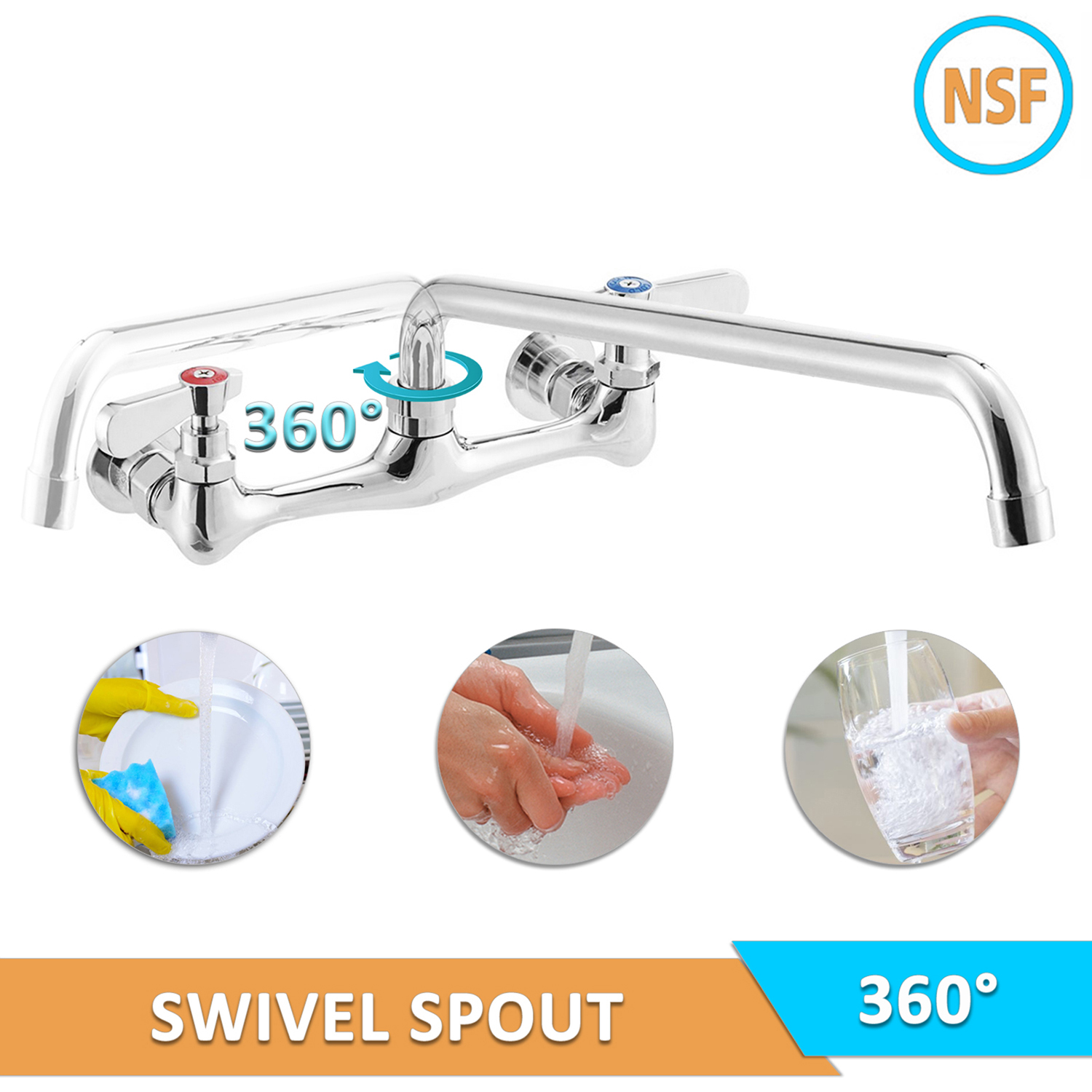 Introducing the Wall Mount Faucet with a 12″ Swing Spout, 8″ Centers, and Lever Handles, a premium solution designed to elevate the efficiency and functionality of any commercial kitchen, laboratory, or workspace. This faucet is expertly crafted to deliver exceptional performance, combining durability, flexibility, and user-friendly design.
