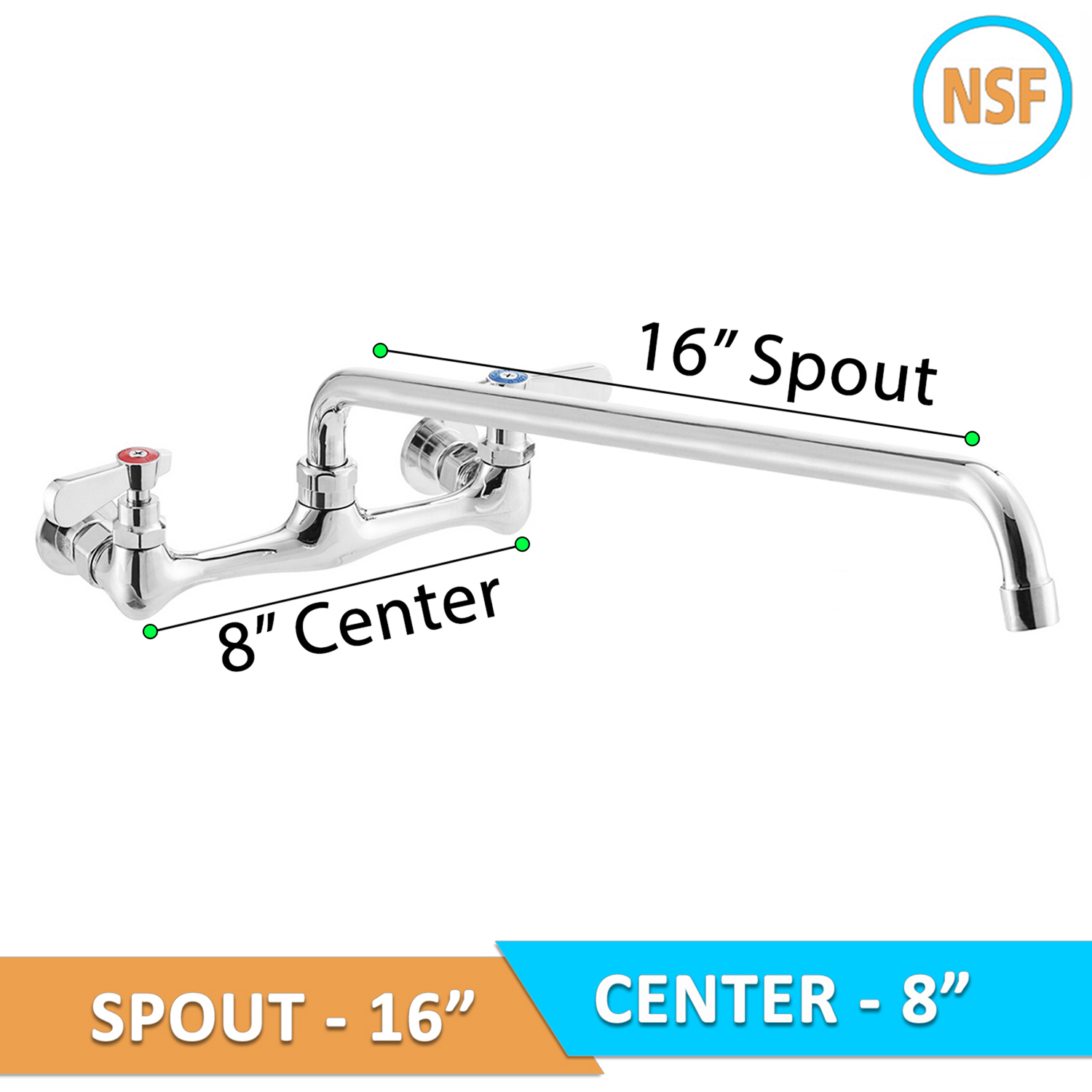 Whether you are outfitting a restaurant kitchen, a food preparation area, a laboratory, or any other professional workspace, the Wall Mount Faucet with a 16″ Swing Spout, 8″ Centers, and Lever Handles is a reliable and stylish choice. Invest in this qualty faucet to experience the perfect blend of performance, durability, and aesthetics, elevating the standards of your professional environment.
