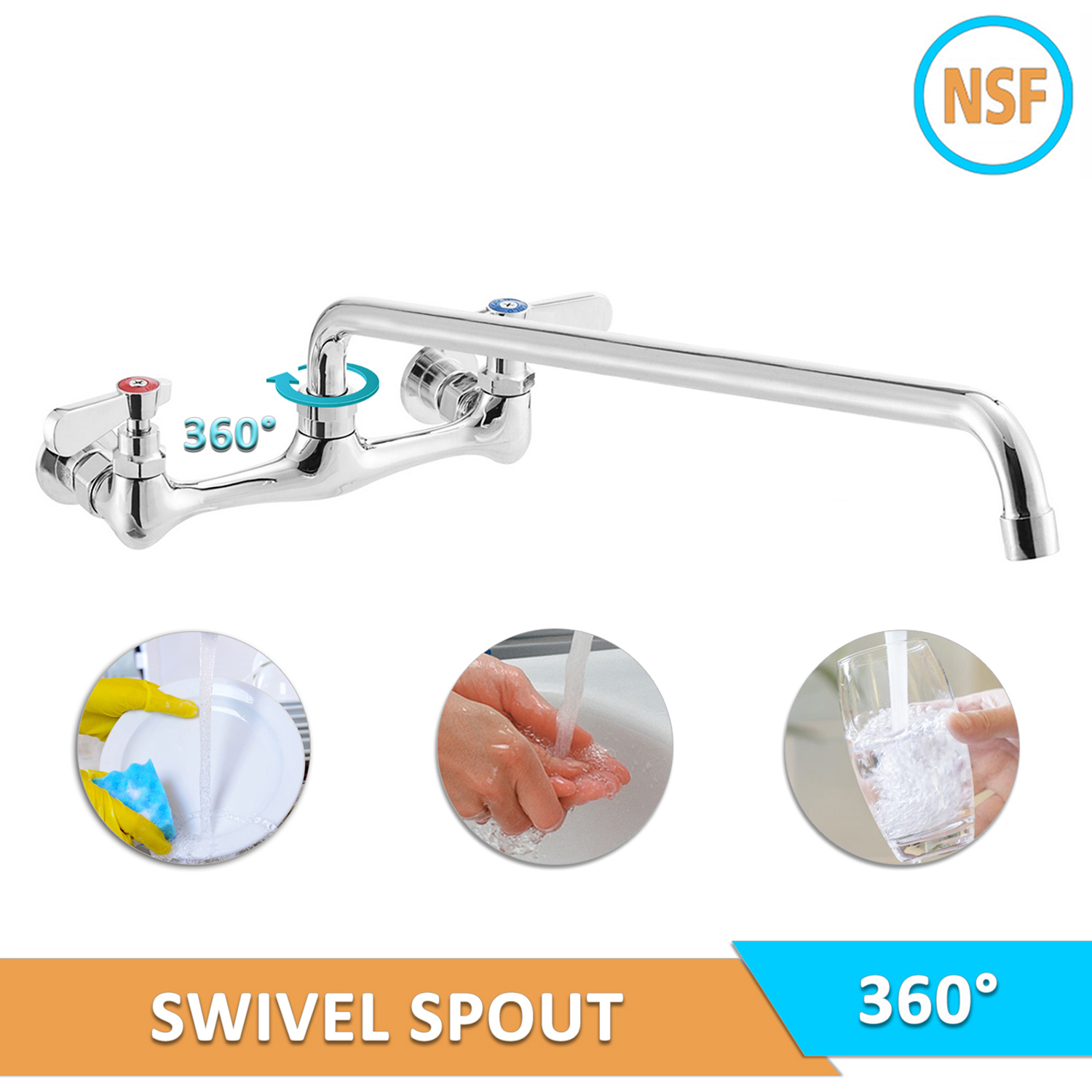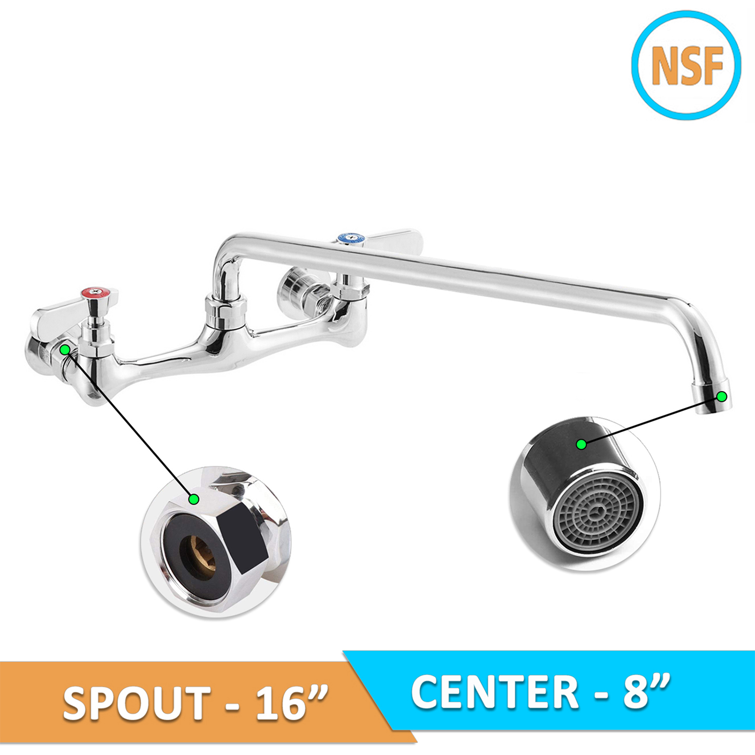 Wall Mount Faucet 16″ Swing Spout and 8″ Centers and Lever Handles